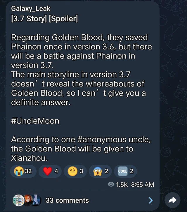 >>5755894 Предположения будущего сюжета на основе слива. Фуга же тоже с такой же татухой как у златиусов, так как основа у них одна - кровь Нанука. Я так понимаю, Фуга и будет орудовать кровью. Так как все действия строятся вокруг того, чтобы продать новых персов, то походу Хуа ею напитают. Ну или Яогуан, ведь она была в сливе