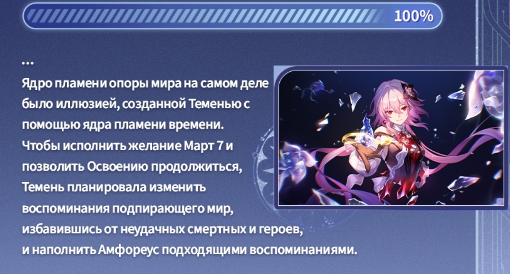 Что-то мне подсказывает, что в 3.8 Реке всё же быть. И он, как я изнаально ожидал, заменит не Гиацину, став запоздавшим Галлахером для Памяти, а ГГ. По красоте его было бы в стандарт пихнуть, что б всё же там была какая-то Память.