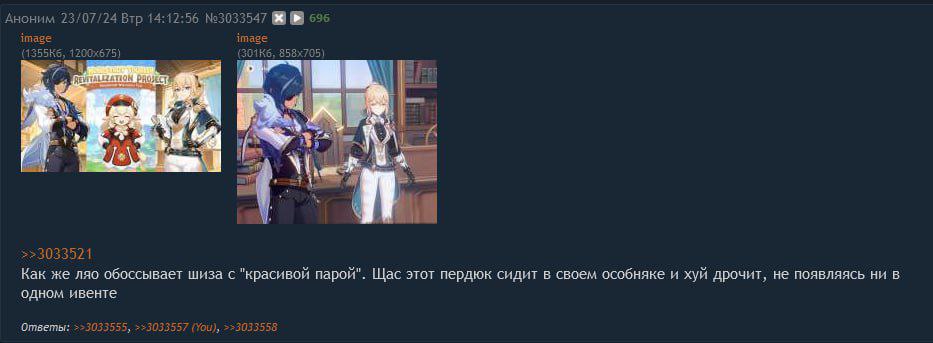 Бля, в ответ на очередной их кривой нейрокал вместо фан-контента упомянул в треде вувы хойофейр и пиздатые фанатские анимации оттуда, так куроблядей просто на весь тред разорвало. Несчастные братья наши меньшие.