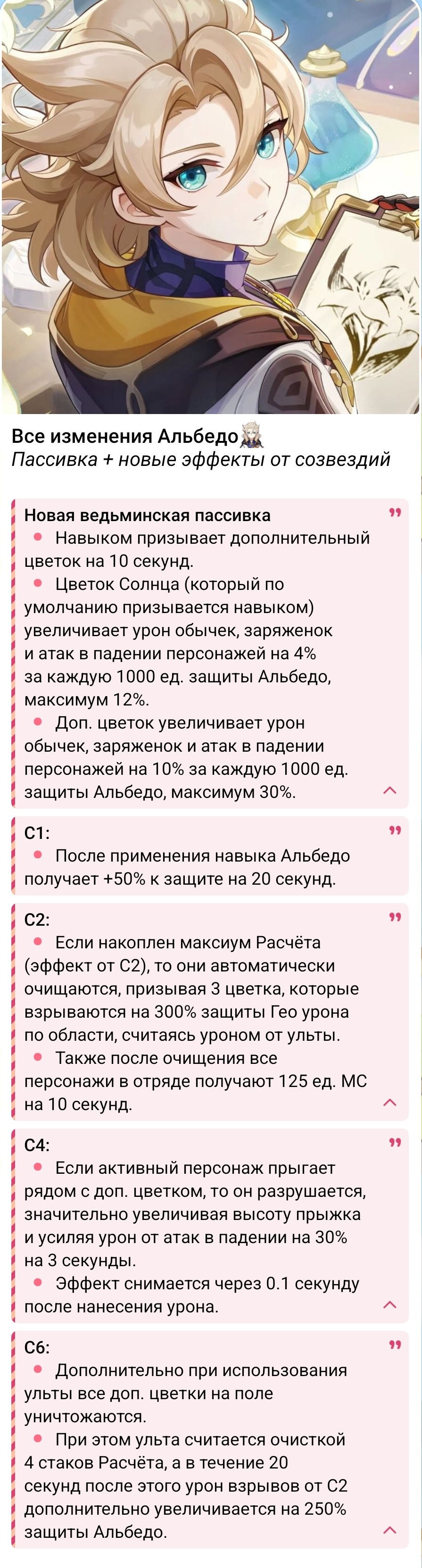 >>5762936 Могу запамятовать но при прохождения курса ведьм персонаж из шабаша получает собственный бафa а у альбедо он радобает так что он своим полем бафает урон за счёт своего дефа вплодь до 3000. надо искать этот список но при фулл реализации дам пожно поднять афикс урона на 30%