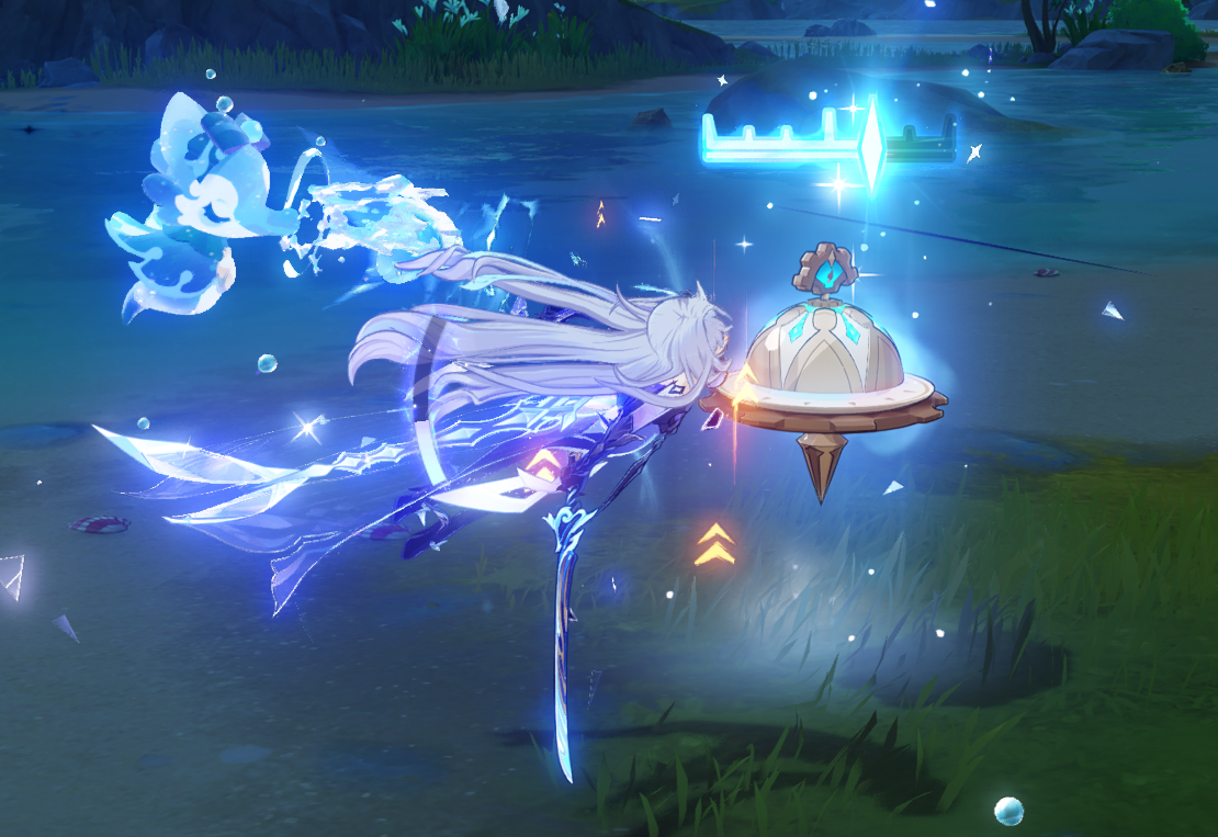 • 🍑 • Мона Попадание обычной или заряженной атакой по врагу даёт 1 уровень «Мимного пузыря» (до 3, по 8 сек. каждый, не чаще 1 раза в 0,1 сек.). Когда другой персонаж из отряда вызывает реакцию Испарения, все накопленные пузыри расходуются – каждая даёт +10% урона реакции. Кроме того, попадание обычной или заряженной атакой по врагу продлевает действие состояния Омена на 2 сек. (до +8 сек., не чаще 1 раза в 0,5 сек.).