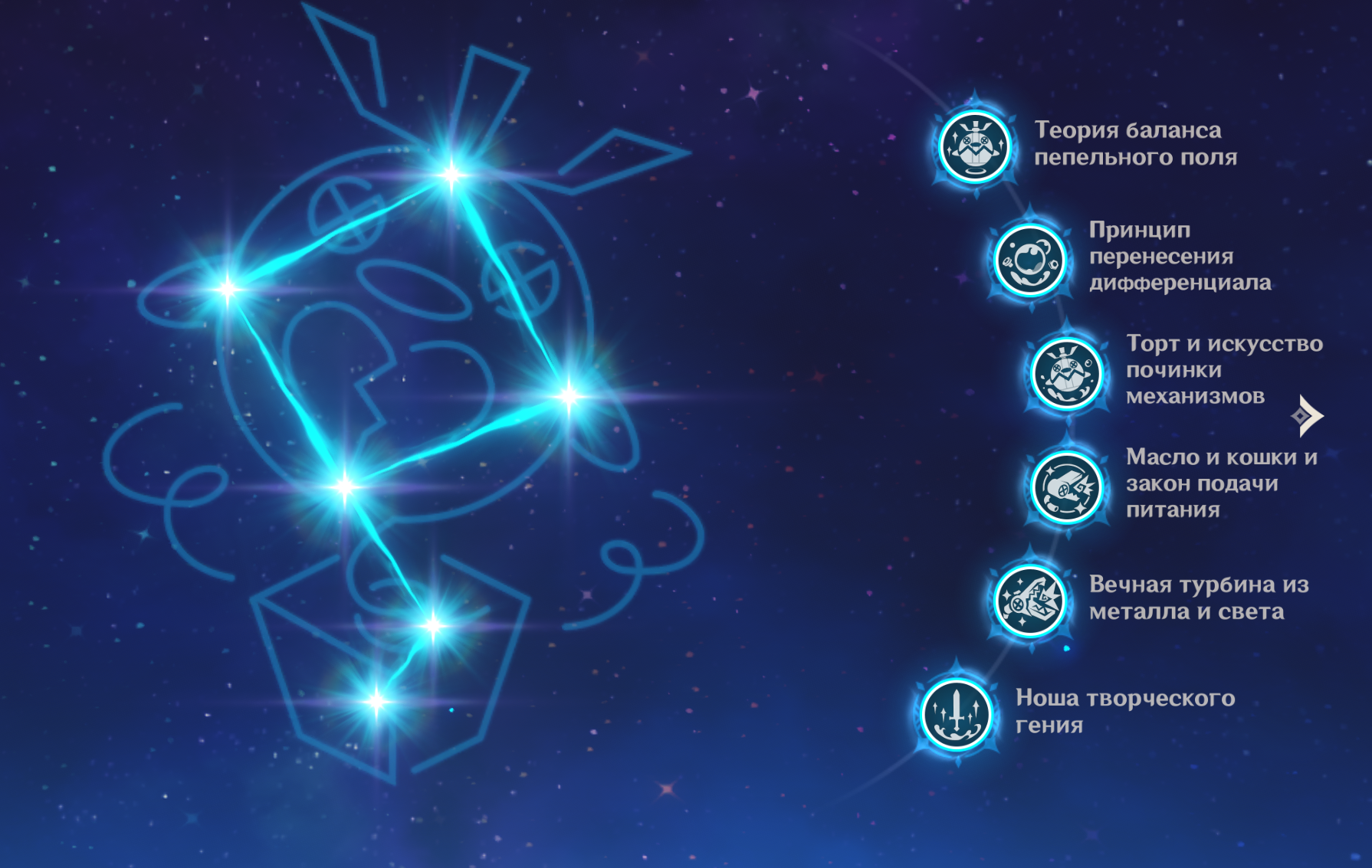 • ⚡️ • Фишль Если Оз присутствует на поле, он получает следующие усиления: В течение 10 секунд после того, как ближайший персонаж вызывает реакцию Перегрузки, сила атаки Фишль и этого персонажа увеличивается на 22.5%. В течение 10 секунд после реакции Заряжения или Лунного заряда, мастерство стихий Фишль и текущего персонажа повышается на 90 единиц.