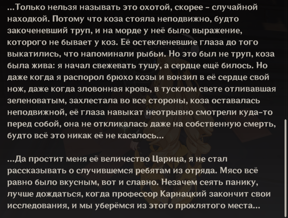 >>5767190 ОДин из худших квестов у туалета. Половину времени провели в воспоминаниях невилетта, и там вроде была какая-то завязка, древний орден злых падисаров, а оказалось просто какой-то ворюга-обиженка пьсма счастья писал, ну и все это не всерьез было. Из фонтейна у Клоринды квест зачетный,
