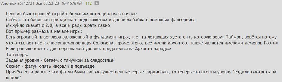 чет угар, 700 дебильных паймон лайкнувших это даже не догнало что им просто в ебало нассали и высрали халтуру лютую, а они наверно восхищаются там типа это всё по лору и тд)))