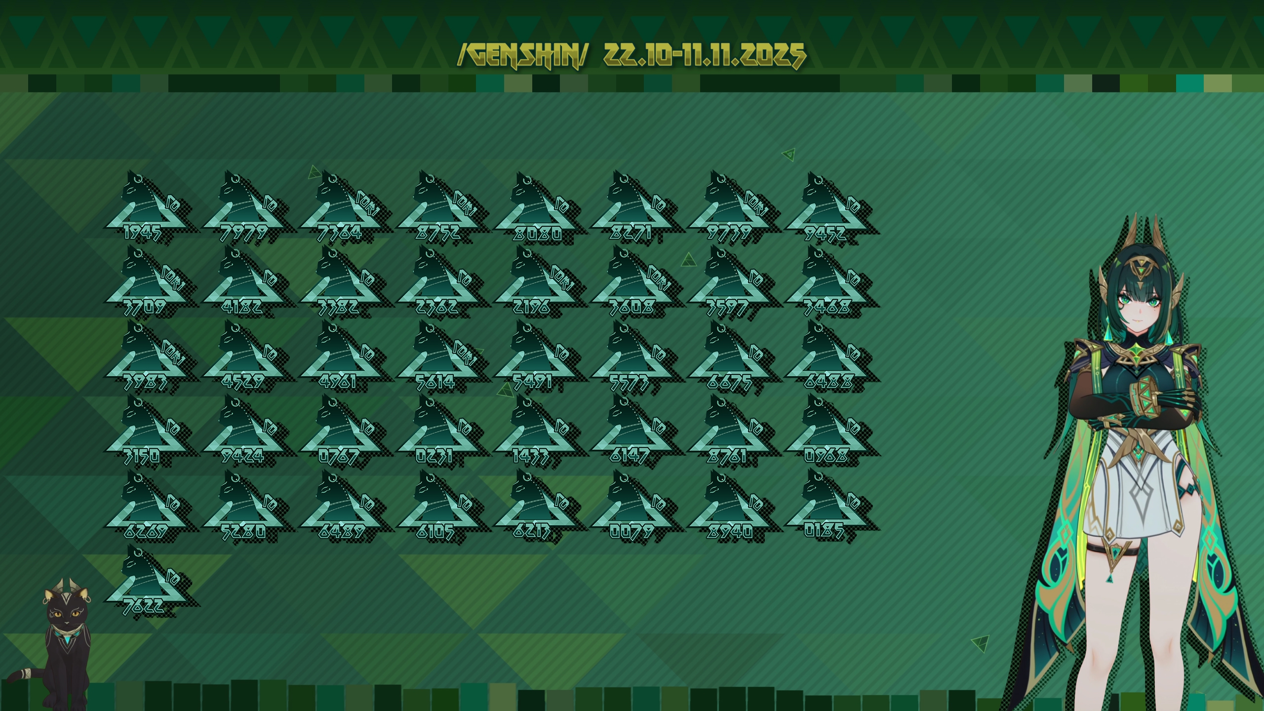 отмечаемся на алтаре Нефер предзапись закончена правила отметки: 4 последние цифры UID + количество выкрученных конст и опционально сигна с рефайнами также не поленитесь кинуть скрин с подтверждением выкрученой змейки 0000 С0 - без сигны и конст, C0R0 = С0 0000 C0R1 - без конст с сигной (без рефайнов) С0-С6 - количество конст, R1-R5 - количество рефайнов видеоверсия: >>5705992 → финальная видеоверсия будет на следующий день после окончания баннера зачем записываться, какой смысл? - это традиция треда предзапись на удачу и запись постфактум на память в архив алтарей (архив в шапке - FAQ и архив треда -> Архив треда: https://rentry.co/genarch ) если кого то пропустил или есть ошибки пишите