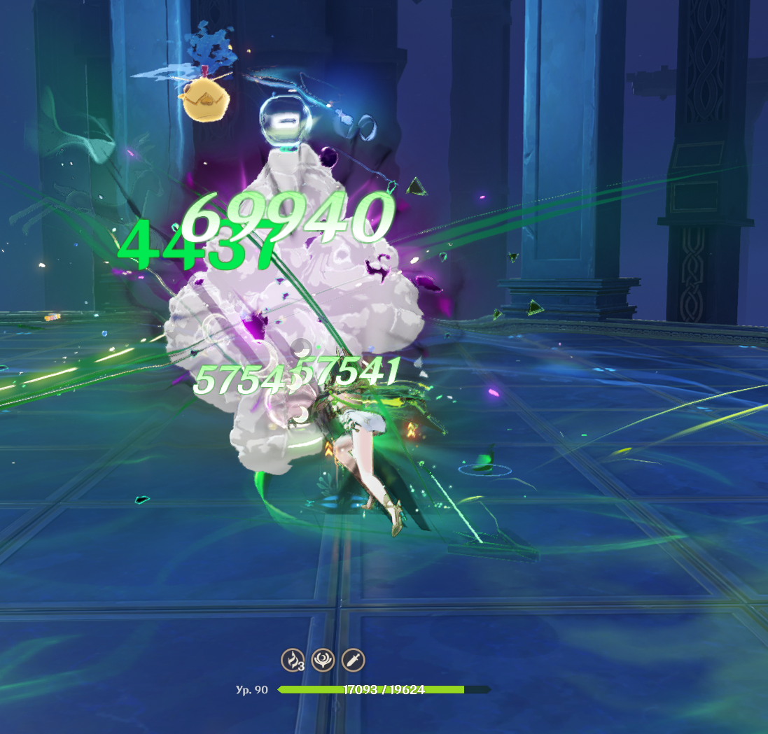 Элементальный навык — основной источник дамага в состоянии Танца теней, в котором девушка совершает усиленные заряженные удары. Скейлы на них прописаны в скилле, из-за чего его качать следует в первую очередь.