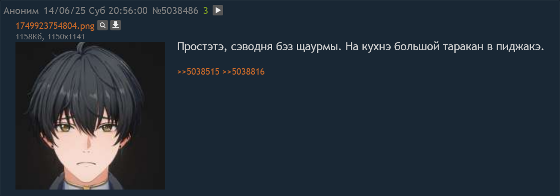 >>5779355 >17597565144610.png Занидаун, ты бы хоть маскировался как-то, а то совсем палевно накидываешь. Или думаешь, мы не знаем, кто тут каждый день держит весь тред в курсе своего рабочего графика?