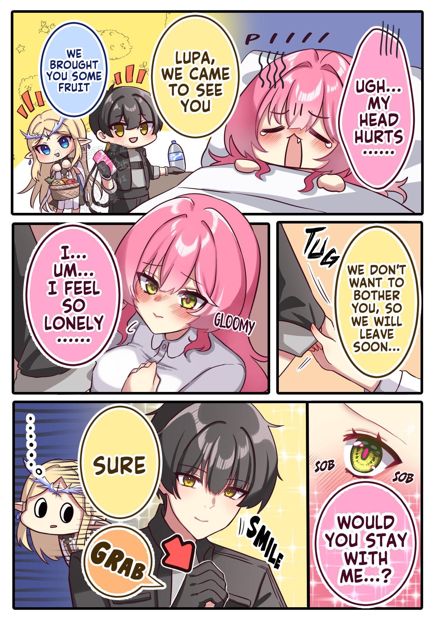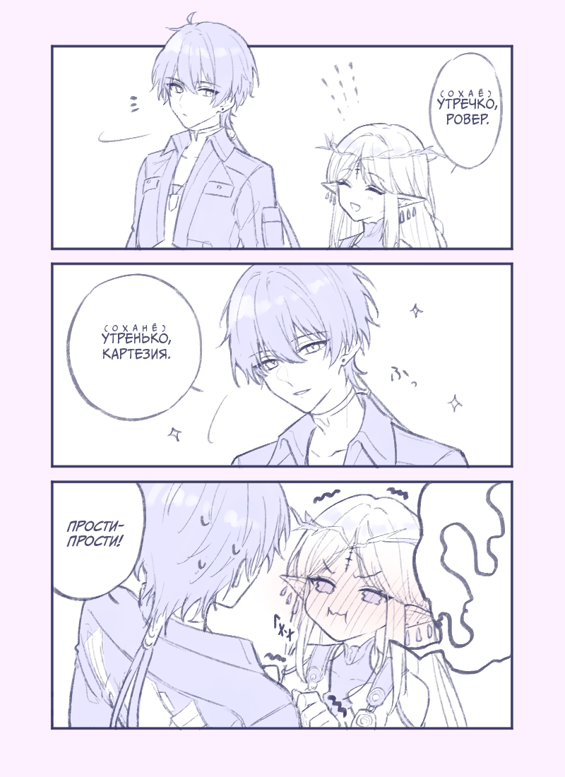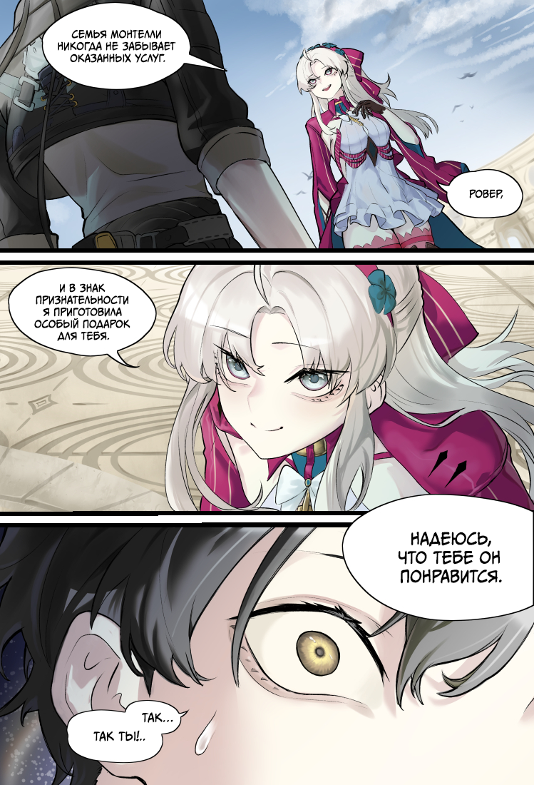 >>5779045 На первом фрейме обычная болтовня. На втором(справа по центру) - ровер говори, что они уходят. Следующий фрем - слева. лупа говорит "я чувствую себя очень слабой" На следюущем(справа внизу) она спрашивает, не мог бы он с ней остаться рядом. На последнем фрейме ровер говорит - хорошо. У лупы звук "Гьют" - что означает