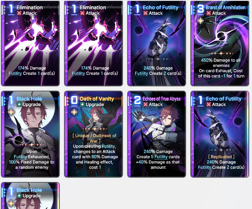 Блядь, какие же у нее убогие карты - когда за нее играю хочется почти все убрать и заменить на нейтралки В этой игре рарность персонажа вообще не отжает силу - 5 ка может быть говном, а 4-ка имбой