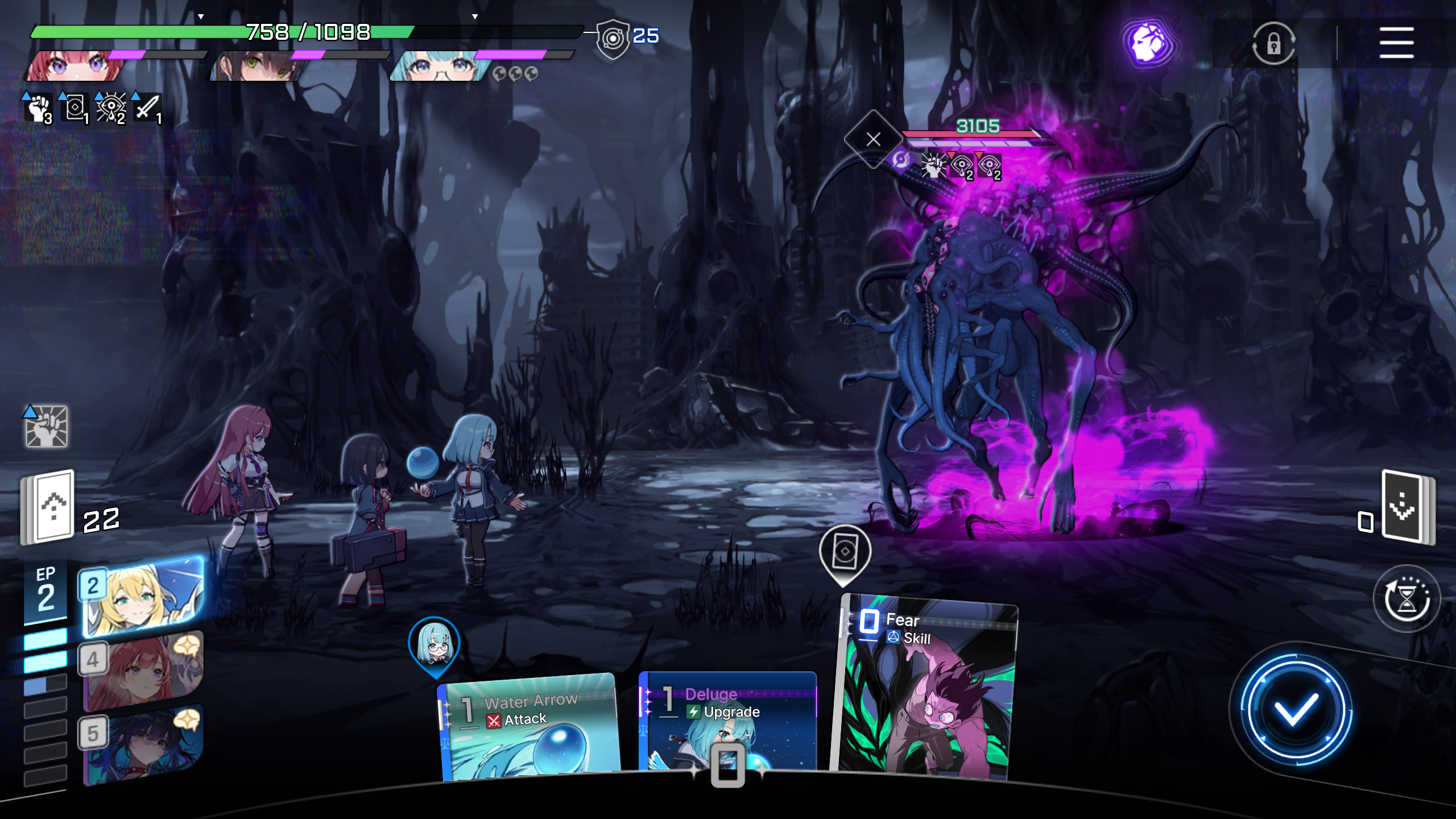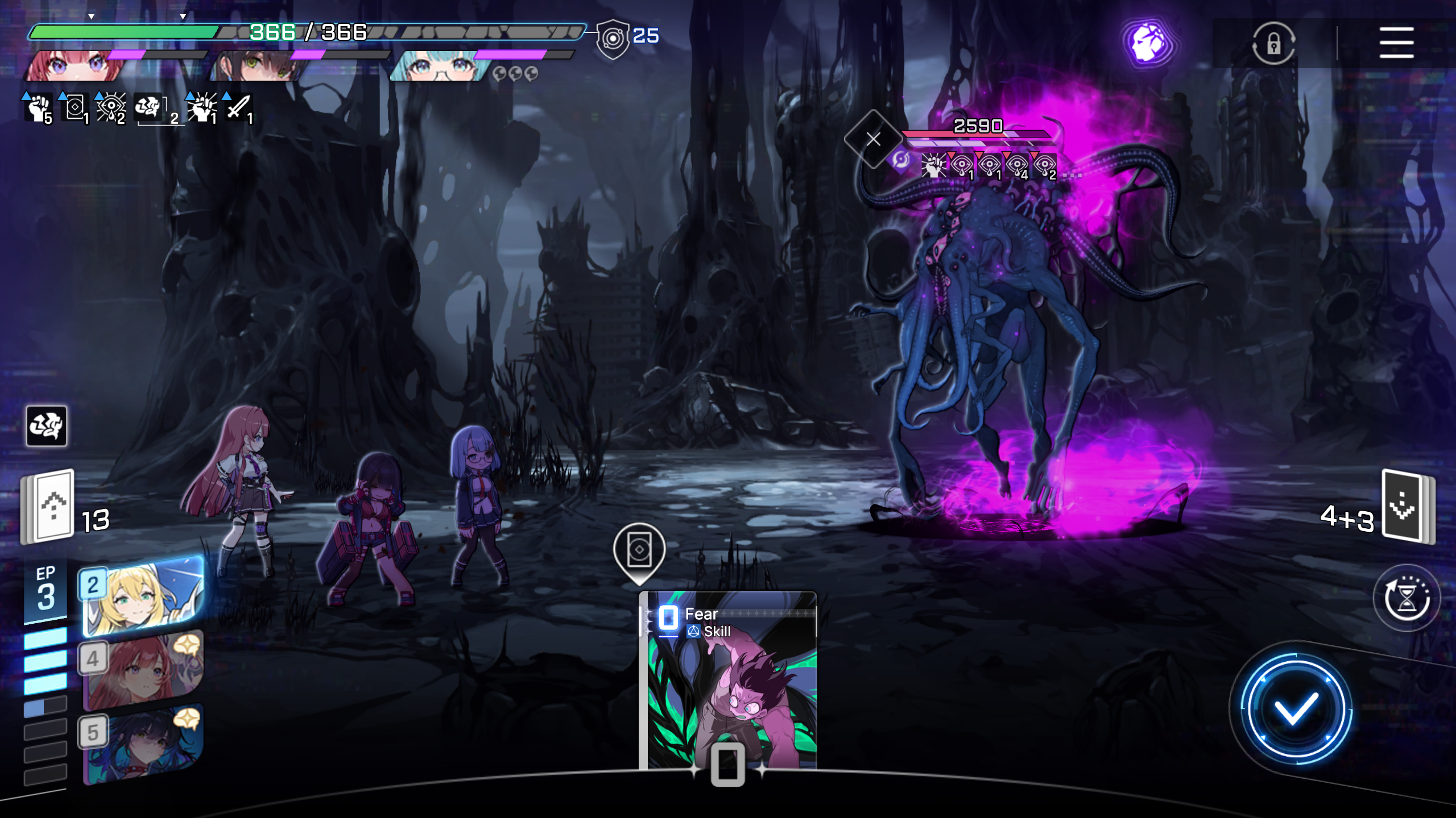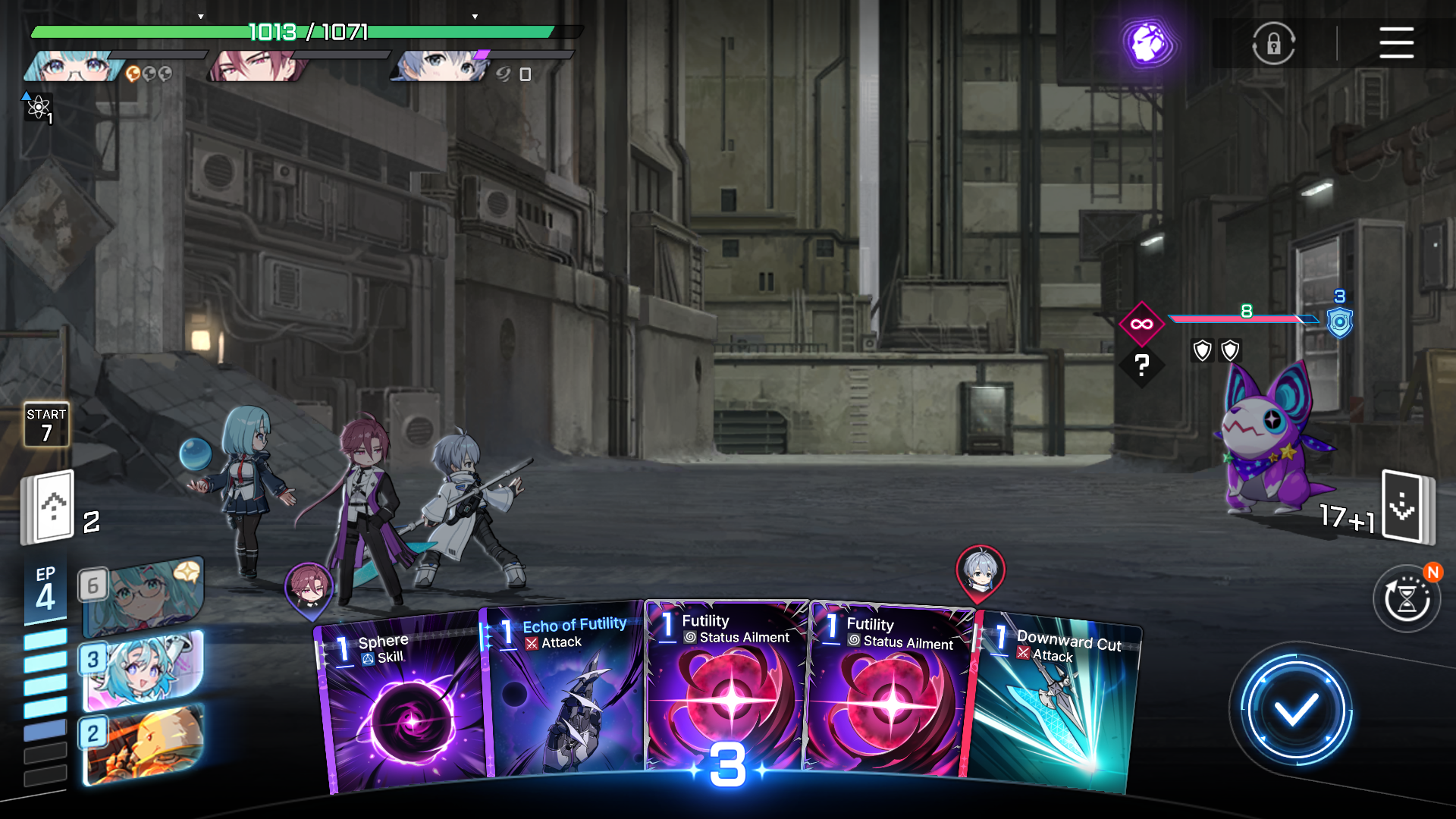 Хард баттл мишн уже иногда требуют смену подхода. Удержанные или дорогие карты против противников с чем то опасным на счетчике действий, команда с добором карт с выносом шкалы почти в ноль групповой атакой и потом цепная реакция сингл атак через +1ап за полный вынос, спам тычек чтобы переводить атаки в что то другое через счетчик действий, или бафф Тесс для дотов во все поля. Такая игра вполне себе зайдет и не как гача.