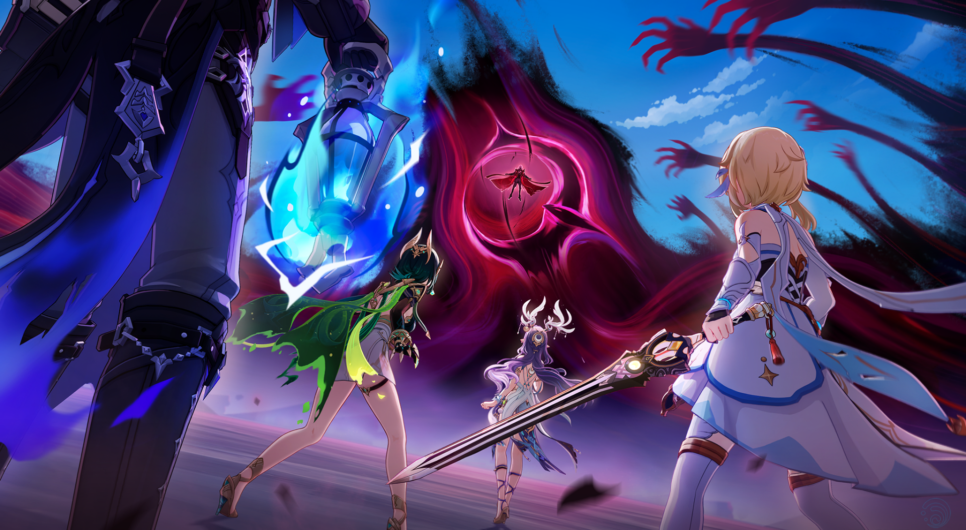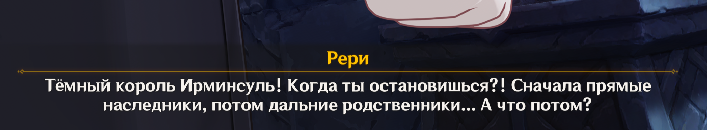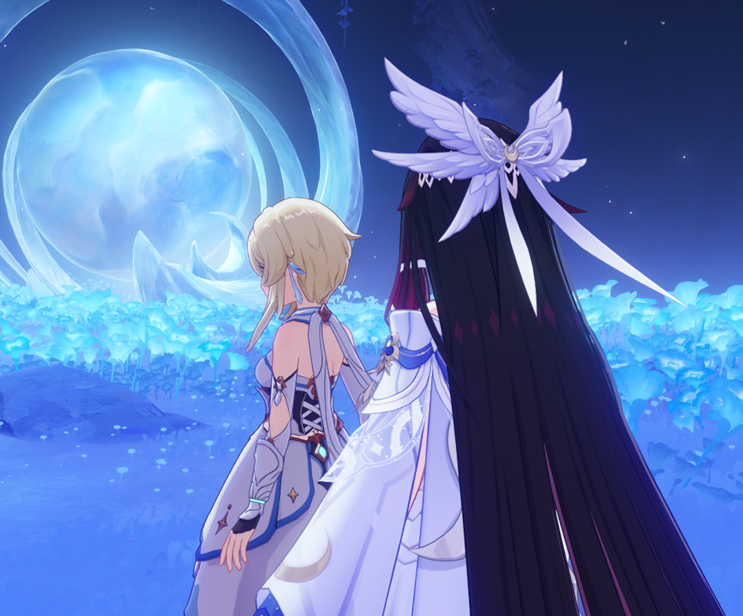 Король ебанулся из-за Люмин, очевидно же, прибыла такая вся из себя и давай накручивать про иные миры, ложное небо и все такое, что надо искать силу в бездне, чтоб свалить нафиг с ненастоящего Тейвата. Кто-то там говорил, что алая луна использовали свою связь с луной как прокси для использования силы бездны, а потом затмение - новая династия, научились использовать бездну без лун, вероятно, им в этом помогла Люмин. Сами луны походу действуют на оба мира, на "настоящий" и ложный - Тейват Собственно, может быть это "пространство" в которое могли убегать алые - это настоящий мир? Ну или реально луна - нейтральная полоса между настоящим и ложным мирами, не очень понятно. Ну и не очень понятна роль небесного порядка и как-то вот замешано время, ну и драконы тоже.