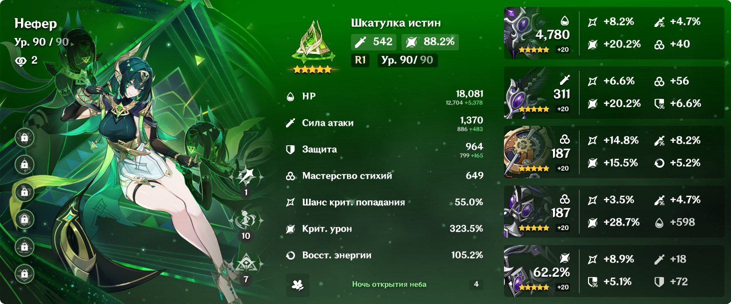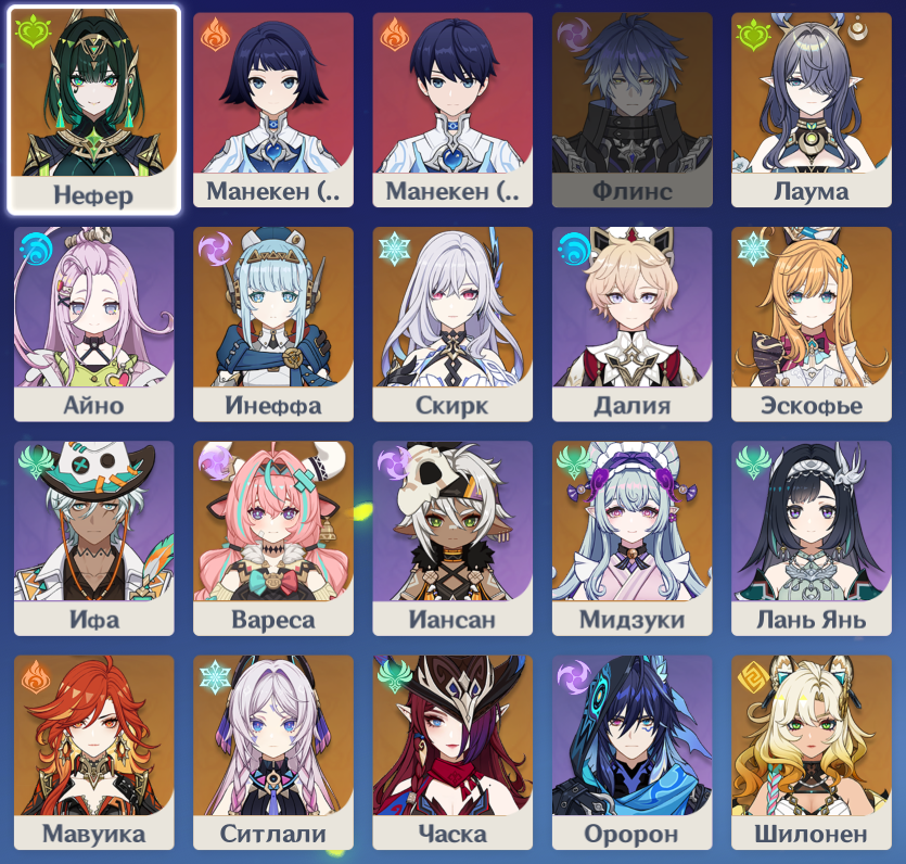 Показываю ф2п тиму с0 Нефер с с0 Лаумой и Дедом, а тк же с3 Айно. Причем тима даже не манмаксерская, тк на Лауме и Айно один и тот же сет, ведь я хз какой еще на них повесить, раз дендро сет висит на деде, а инструктору не хватит базовых характеристик чтобы нормально сидеть на этих персах