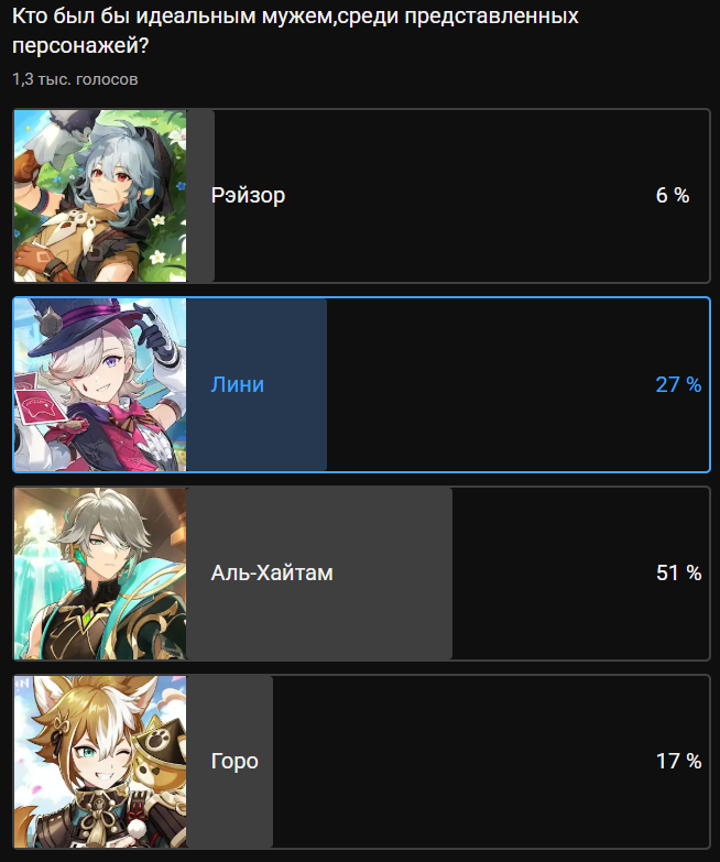 >>5781083 Хайтам же пидор и женат на Кавехе, а вообще у них там такие хуевы отношения токсичные, что я бы за него за муж не вышел б, будь я тян.Лучший муж - Дилюк Сама