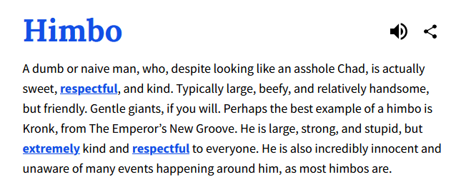 У западников такой термин есть, "himbo" - внешне накачанный и привлекательный мужик, но при этом немного ветреный дурачок, при этом вежливый и добродушный. Так что отставить тряску, никаких вайф никто красть не будет. Лучше за Нефер смотрите, она агрессивно всех пытается должниками сделать.