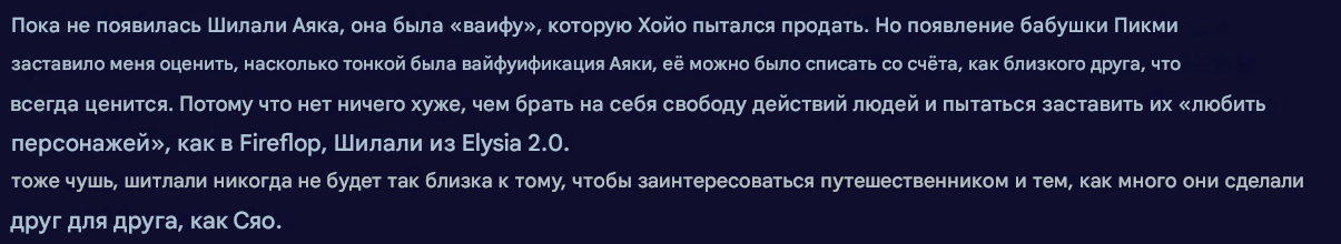 Да ладно там с сюжетками, я их читать перестал ещё давно, а иначе до сих пор бы читал эти потоки воды. Геймплейная презентация полный кал, дали в паре с гидро ГГ, ну это же кринж, буквально та же самая фигня была с Лаумой, ну не дает ГГ воду, вот в чем прикол, так что вместо крутого дамага какие-то пуки невнятные. На самом деле, много более интересных вещей ожидается, там впереди Алиса, Дурин, Колумбина, может быть даже Варка, почему нет-то, а тут какие-то дендро арбузы, такое себе, неохота крутить Нефер.