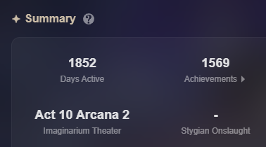 Ачиводрочеры на месте? На какаше смотрю у челов 1615 ачив сделано, у меня 1614. Вопрос какую из пикрил ачив возможно сейчас сделать? Есть еще одна не выполненная, но там статую вкачать на фул, это точно не делается. Арканы не собрать по идее, хроники вторые тоже растянуты на весь патч, если там конечно не дают ачиву за первый же квест, который я смогу только во вторник сделать. Остается непонятная ачива, которая еще с 6.0 была добавлена, но про нее инфы нет даже, и в 6.0 никто ее не делал.