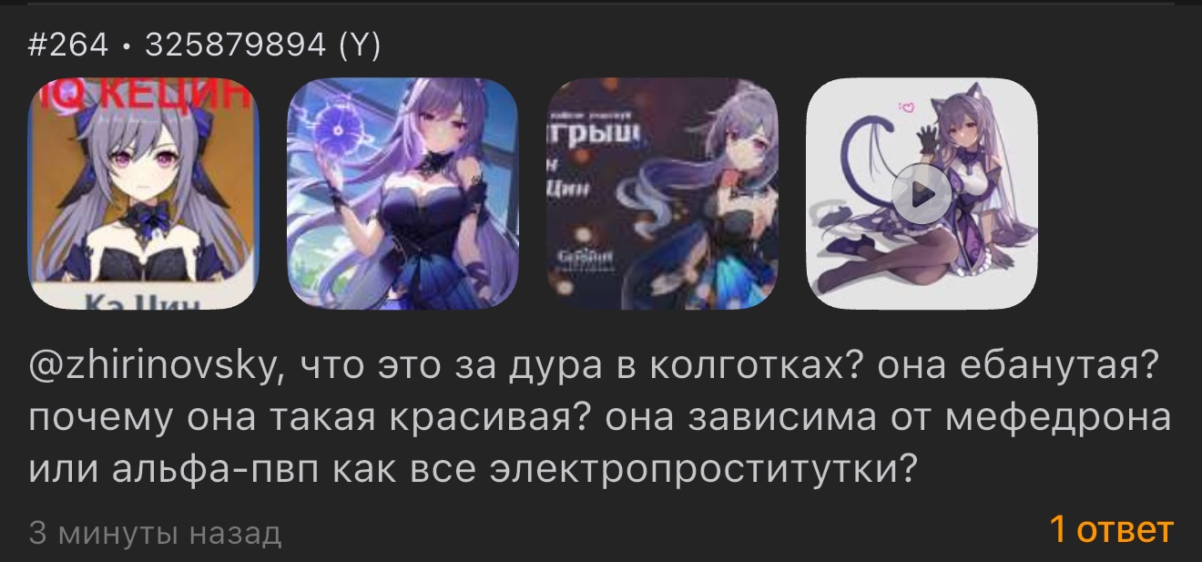 >>5781547 Да я в целом тоже не понимаю этой херни, я не против, что Алиса мама Кли, а значит у нее был, секс, я даже не против того чтобы Отцом был Варка, почему бы и нет. Но Алису крутить вероятно буду, а Варку почти наверняка нет. Просто мне нравится девочками играть, китайской шизы не поддерживаю. Как будто за пределами Китая такая херня только в обскурных сообществах типо двача. Я еще на твиче сижу, смотрю бездноботов. Там этого нет, они крутят себе курюху и радуются жизни. Тут еще мелькал ролик, где анимекул попускал такого сосискошиза.