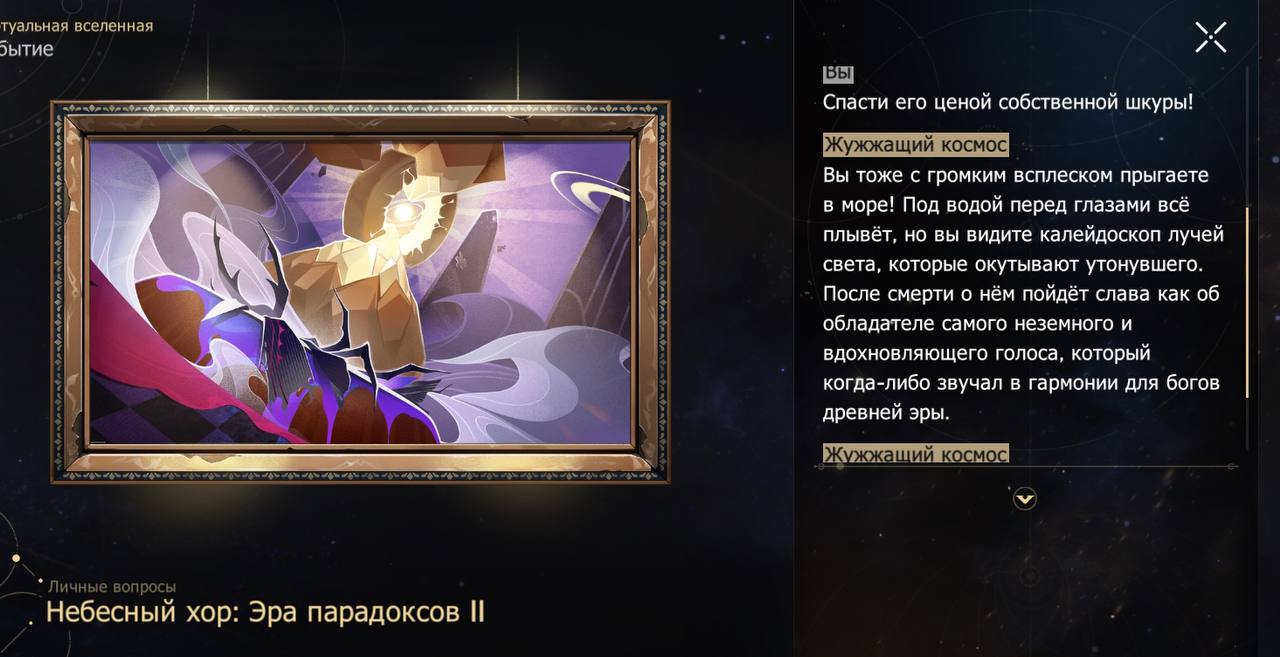 >>5782457 В трейлере тоже есть моменты выразительные. Как игра на контрасте с бесцветными местами, напоминая о бесцветном мире Ахерон. Но что куда интереснее, это момент, когда она тонет в водах. А бескрайнее море - уже тема Небытия, "горизонт бытия" именно этими водами и наполнен. И вот что важно, похожий момент присутствовал в сюжете той самой жучиной виртуалки, где есть история про двух братьев Порядка и Гармонии, когда один под воздействием Равновесия срывется с обрыва и тонет в море. Погибает именно брат Гармонии, так как первый вариант ответ - смирение и установление синхронизации с силами Порядка, а второй беспомощная попытка спасти с последующим уточнением про голос гармонии. Но в этот раз "утонет" наоборот Порядок. Но, скорее даже, оба. Просто по-разному. Один напрямую будет поглощён, другой же коснётся тень.