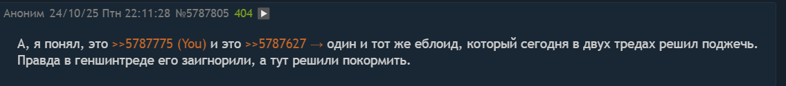 А, я понял, это >>5787775 и это >>5787627 → один и тот же еблоид, который сегодня в двух тредах решил поджечь. Правда в геншинтреде его заигнорили, а тут решили покормить.