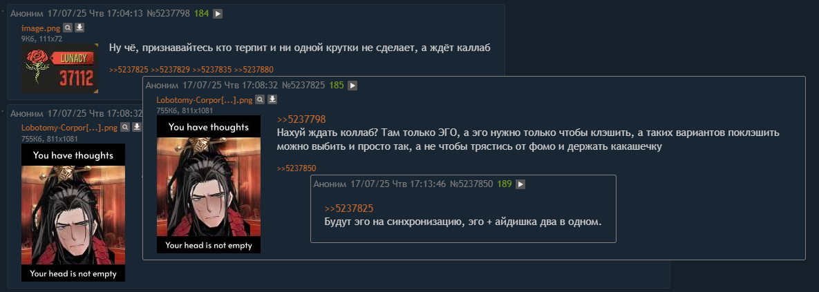 Хотя лично я рад, что Джихуй хотя бы не устроил анальный паверкрип с айди какой-нибудь Ксяо или че там вкакашечки коупили на эту тему. Это значит, что все еще есть шанс выхода айди на Сальвадора или кого-то еще из прикольных челов из ветки Филлипа: Юны, Оскара, лоли-клонов. Если бы Жэхуй реально скипнул сразу до Звезды Города, то я бы неиронично удалил свой аккаунт.