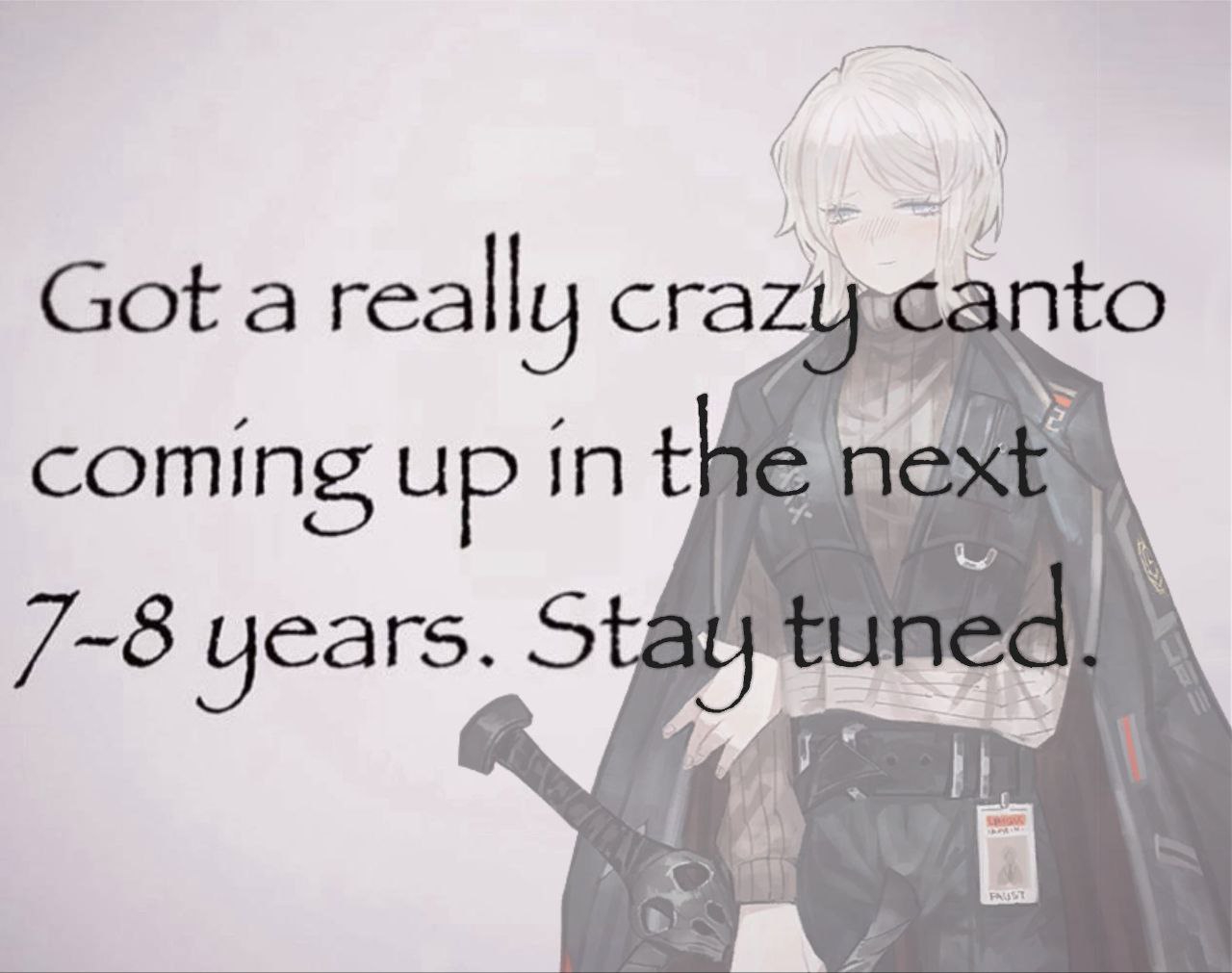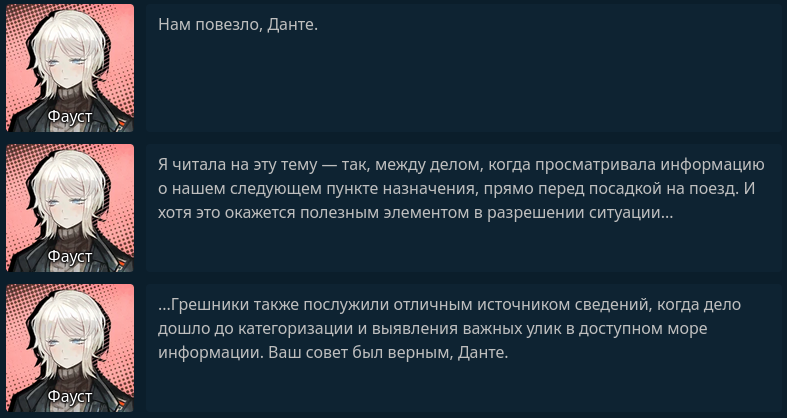 Окей я дочитал канто хонга. Внезапно заебись, финал всё каловые моменты компенсирует, уже начал арку обучения и там тоже всё ахуенно со старта. Ну и как нюфаг в целом хочу подвести итоги по лимбусу тк я съел весь доступный сюжетный контент. (вкатился где то пол года назад) Ахуенно из 10. Доебаться всегда есть где, но никто и не обещал мне идеальный шедевр сценарного искусства, но минусы очень легко перекрываются и о них не думаешь совсем. Эмоции сюжета вызывала постоянно и очень много. Единственное канто которое все хвалят, но при этом я не выкупил и совсем не понял в чем ахуенность, это Исанговое (4е кажц), мб стоит перечитать еще раз.