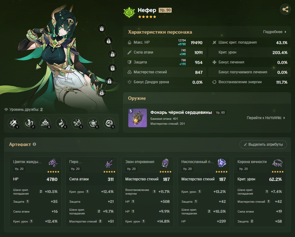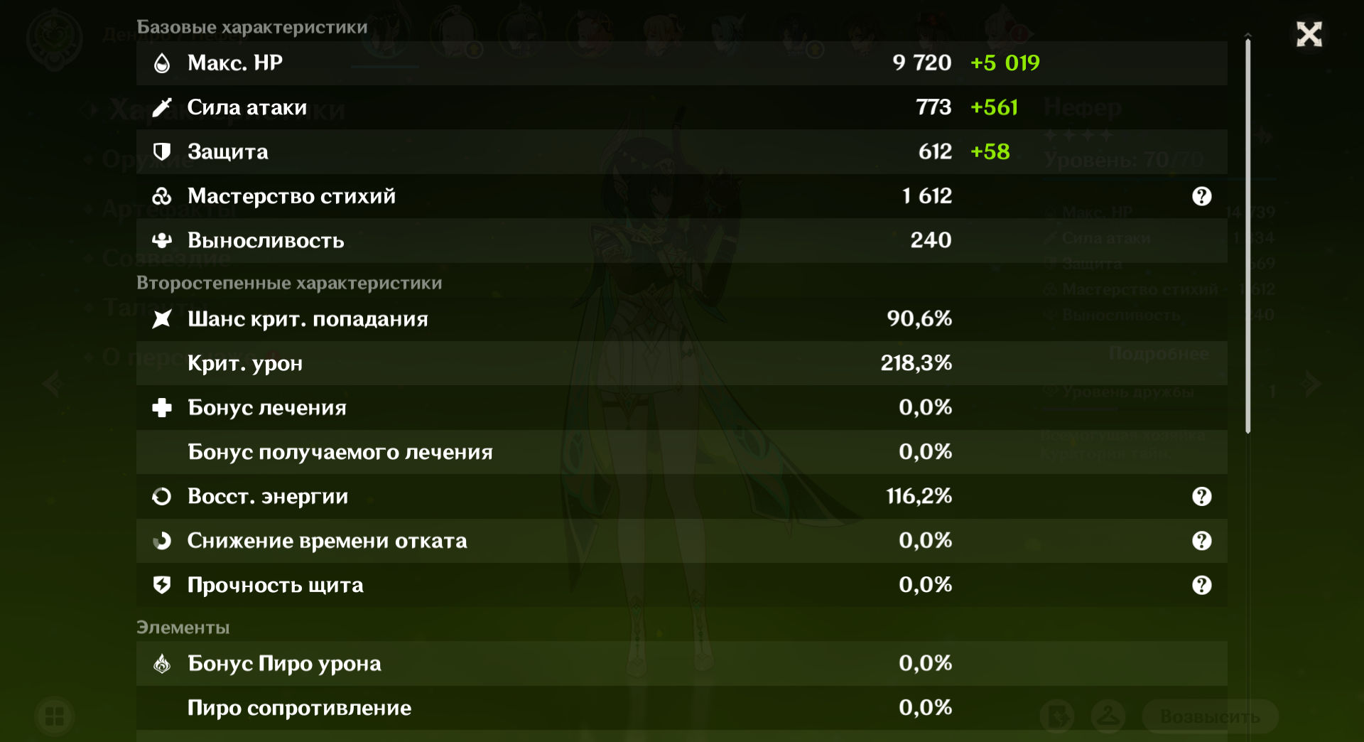 >>5790368 Вот моя Нефер, на пикче нет 20критрейта от Лабубы и с2 Няхиды и 40 критдмг от них же + 36 от сигны. Она в безсустейне Лабуба - с2 Няхида - Айно дамажит сильнее Скирк.