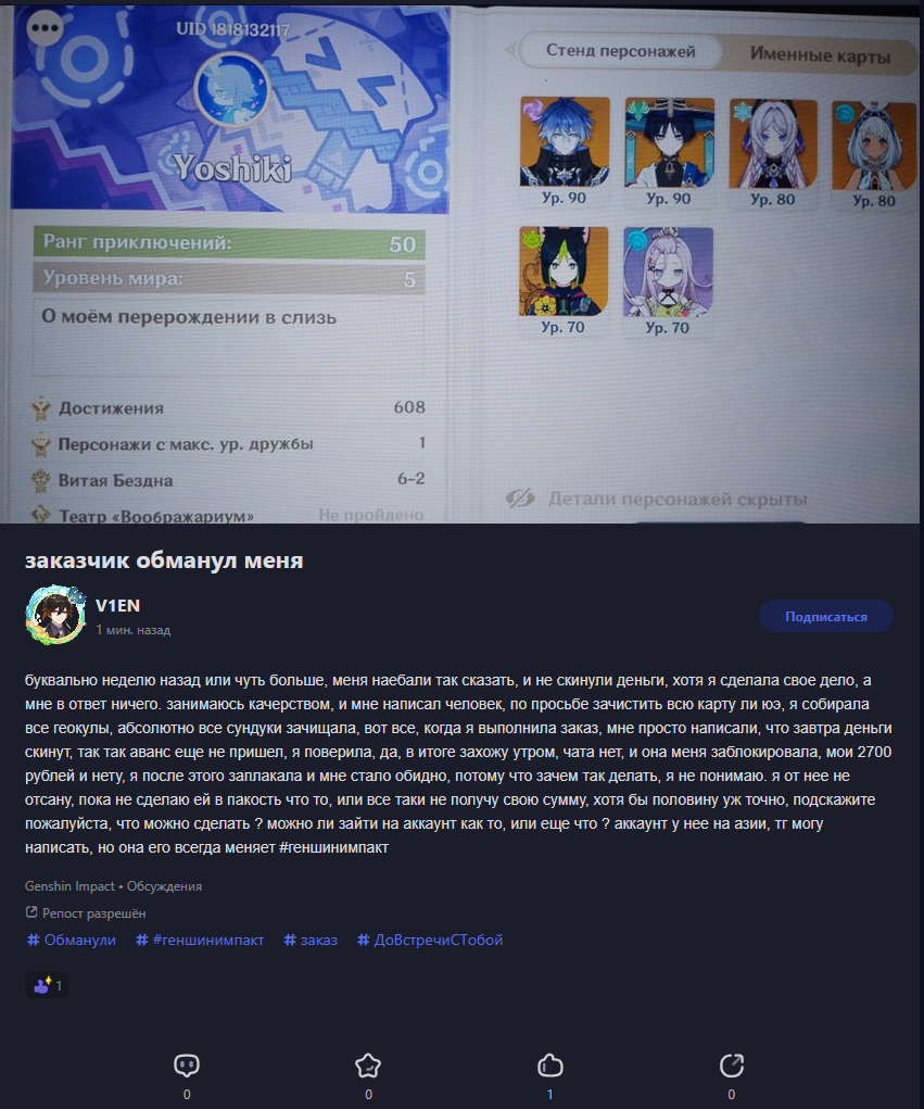 Мне нравится жизнь после дропа геншина. Да, немного жалко что чемпиков больше не покрутить. Но зато стало легче дышать от того что не нужно больше дрочить смолу каждый день. В целом плюсов больше, чем минусов