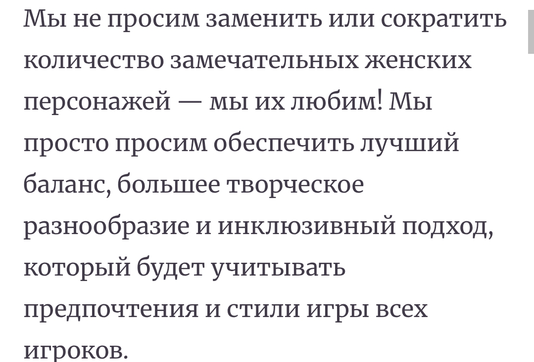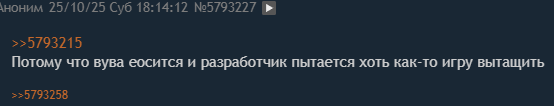 >>5791253 Я конечно понимаю, что может и похуй. Но сегодня залили трусы, а завтра все в тулупах будем - проходили уже, знаем. Так что нельзя сдавать назад и говорить что потерпим - ведь другая часть аудитории будет требовать большего закутывания, а разработчик продолжит тестировать терпение - оно нахуй нам надо?