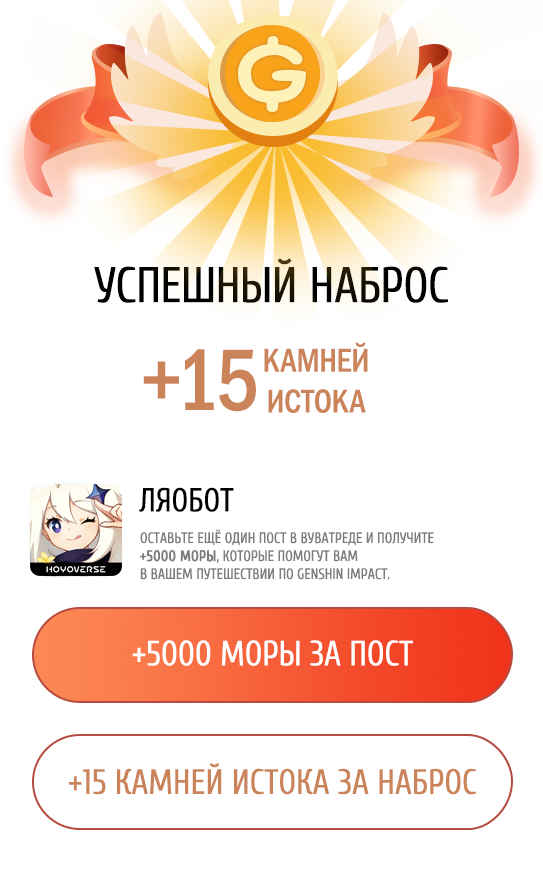 А что, вувята? Что мы, Сoлонa нашего, что ли, подведем? Мы геншинята, что от собирания 20 цветочков в день устают, или вувята, готовые часами эхо фармить ради дабл крита? Али нас сломит 5 раз проигранный 50/50 коинфлип львёнку? Или испугаемся эха с кривым мейнстатом да унылыми саб-статами? Или забудем, что истинная победа куётся не гарантом, а стальной волей и пустой кредиткой?