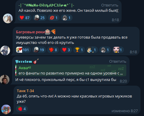 Контент за последние 3 дня, который создают жиробубели про маньяка. И их комменты. Вы представляете, что было бы, если бы Ляо их не вытравливал из игры? Это ужас нах. Это просто нелюди нах.