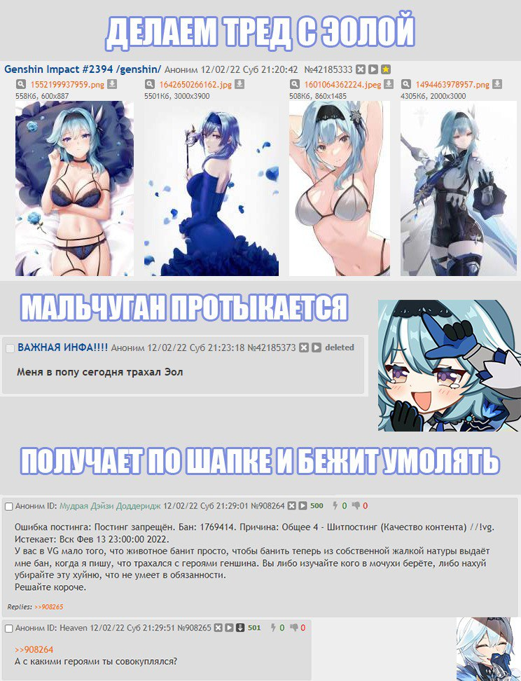 >>5794098 До чего ж смешно понимать что здесь сидят 31+ летние лбы, которые еще и на серьезе питают ненависть к 13 летним девочкам из тгшек, называя каждую из них паймоной, хотя сами наверное поголовно колобки полулысые.