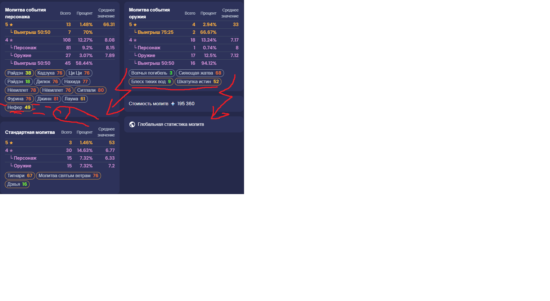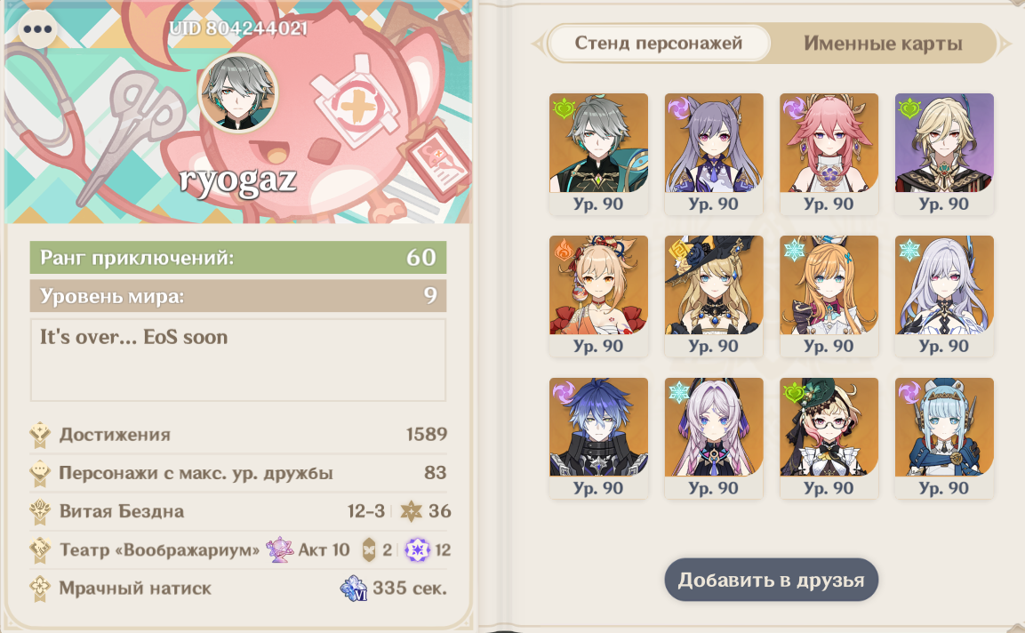 продолжаем отмечаться на алтаре Нефер правила отметки: 4 последние цифры UID + количество конст и опционально сигна с рефайнами также не поленитесь кинуть скрин с подтверждением выкрученой змейки 0000 С0 - без сигны и конст, C0R0 = С0 0000 C0R1 - без конст с сигной (без рефайнов) С0-С6 - количество конст, R1-R5 - количество рефайнов видеоверсия: >>5705992 → финальная видеоверсия будет на следующий день после окончания баннера зачем записываться, какой смысл? - это традиция треда предзапись на удачу и запись постфактум на память в архив алтарей (архив в шапке - FAQ и архив треда -> Архив треда: https://rentry.co/genarch ) если кого то пропустил или есть ошибки пишите