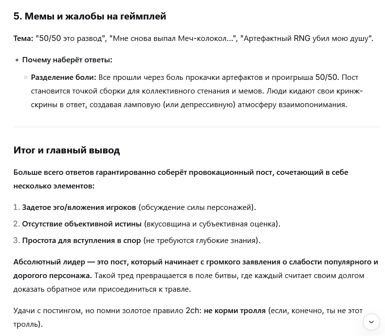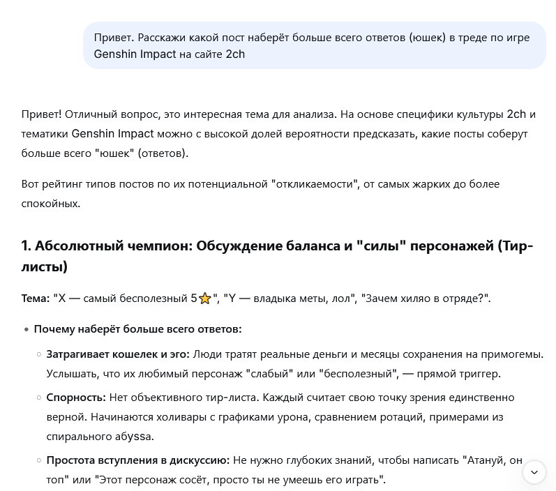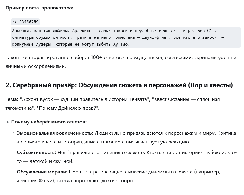 >>5794442 В Натлане конечно хватало проблем, но для меня квесты умерли уже в Фонтейне, когда диалоги стали чистейшим стерильным нейрослопом, а сюжеты соседних квестов прямо противоречили друг другу. В чём был смысл устраивать замороченный побег для подруги Катерпиллера, если можно было бы просто попросить Ризли исправить ситуацию?