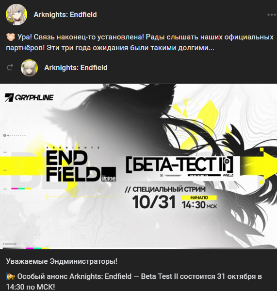 Как вам, несомненно, известно, долгожданный Beta Test II Arknights: Endfield стартует 31 октября в 14:30 по московскому времени.