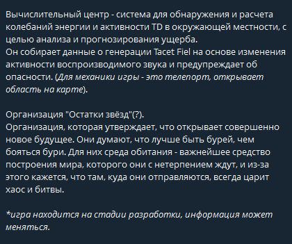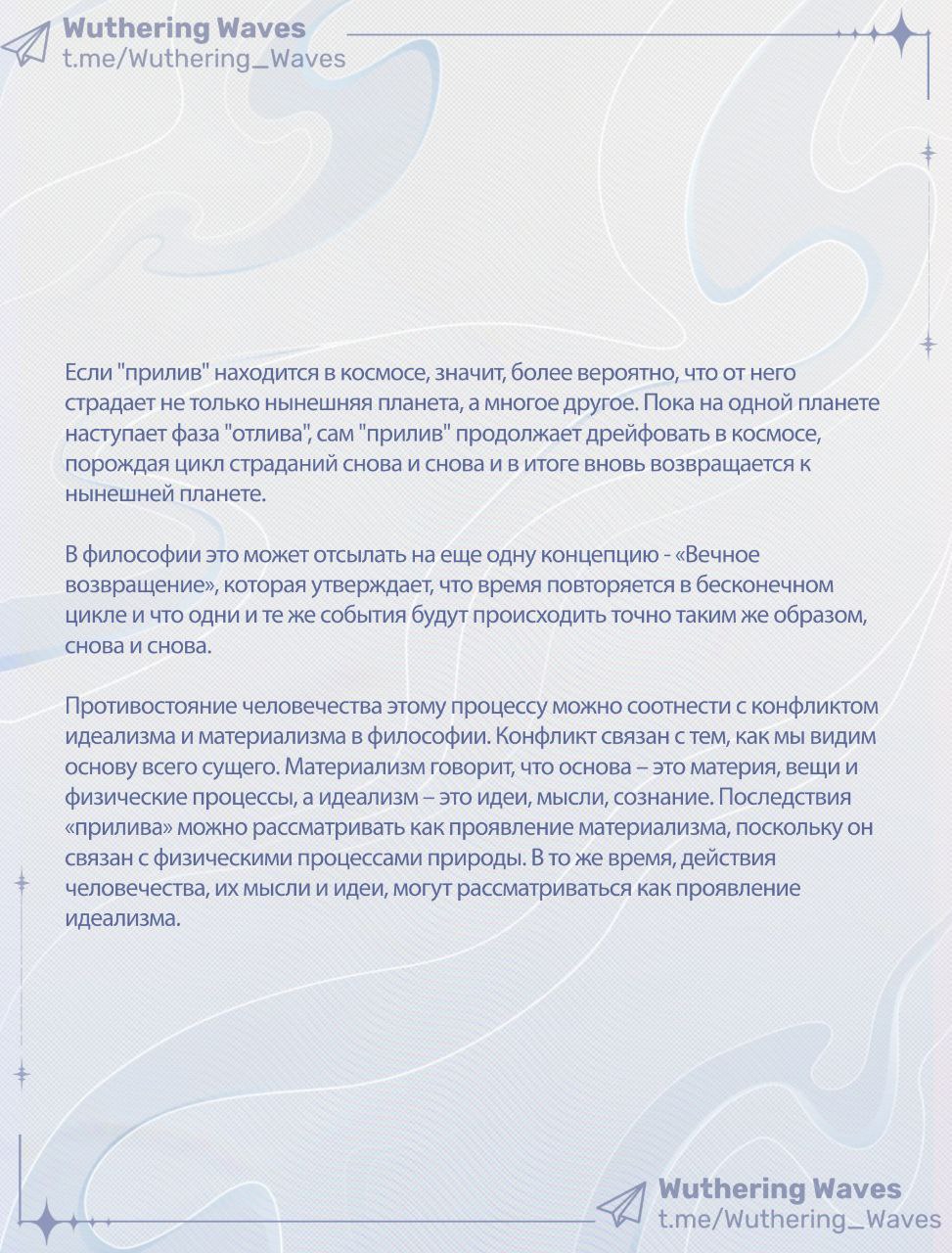 >>5800843 3.0 пока не сливали, наглядно не увидишь. Пик1 вроде как концепт арт, у чисы на дрип картинке такой же символ "днк-треугольника" (пик3), Описание локации: A civilization located at the Arctic point of Solaris. The ancient pole shifts redefined the planet's geography and made the Lahai-Roi region the current polr point of Solaris. As time passed, the huge underground cavern beneath thick ice layers gradually became inhabitable for humans. In this warm and humid underground oasis stands an academy metropolis for Resonators, celebrated as the "Research Haven of Solaris" and a "Utopia for Researchers". Пик2 названия локаций