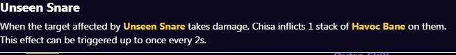>>5805786 Вмысле? Ансин снейр 30 секунд висит. Когда цель получает негатив статус от тиммейта Чиса вешает на него бейн. Правда там попил на с1 для корабликов.