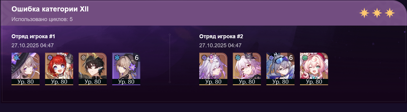 >>5803270 Я такой же пачкой с Аглаей судью только за 3 цикла прошел Очень долго полоску точть без уяза Сандей е1с1 Аглая е1с1 остальные е0с0 А два патча назад 0 циклов было в этой дырке Плюс один цикл за патч накидывают как лопатой