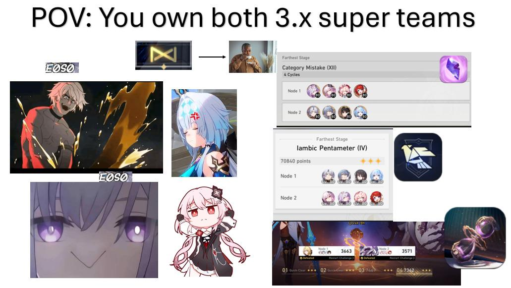 Мои пачки что делали 0 уже не делают. Герте банально не хватает урона и Трибби (но там возможно пройти если б играл кто-то более скилловый). Света в безсустейне умудрилась вывалиться из нулевого цикла и это важно, так как в начале 1го надо выбрать кого босс ваншотнет и если б не было Каси взятой только ради пассивки был бы вайп (100500 раз спасало уже, а в треде доказывали что бесполезно). Посмотрел китайские проходки и там везде или сигна Фаенона или 2 ддд и WTF релики. Впрочем с выходом Констанции наверно будет супер просто.