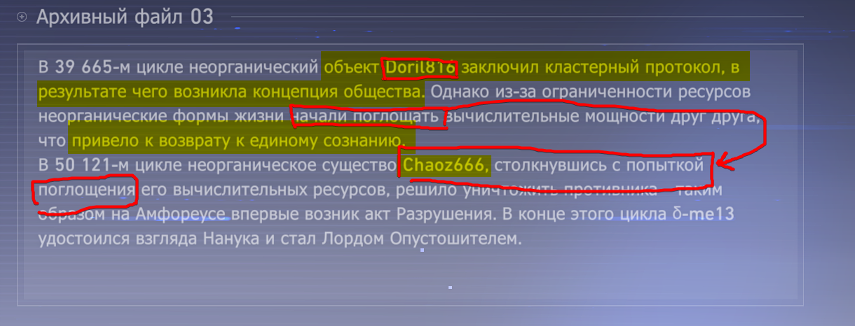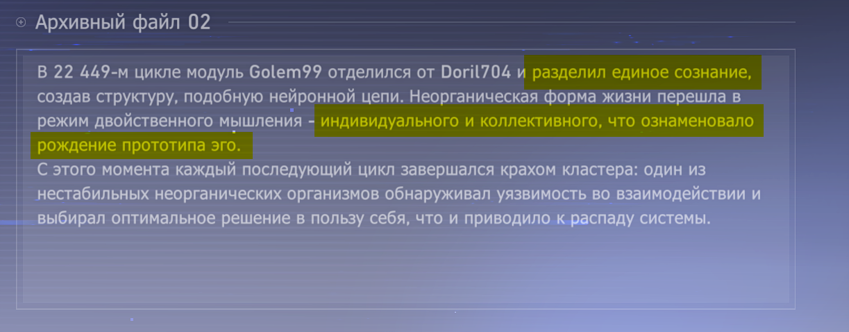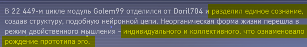 >>5807034 > уничтожил ИИ хайвмайнд Ни слова нигде не было про "хайвмайнд", сигналы изначально были независимы. А через уничтожение себе подобного проявилась первобытная сила Ненависти, которая дала основу для рождения Сталесклепа. > Тот же момент ознаменовал и рождение первой "органической жизни" и стал её будущей основой Органический этап запущен Ликургом, а не нечто случившееся в ходе "естественного перехода".