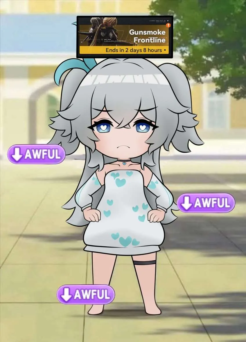 Мне в целом похуй на игру. Сейчас вот вернулся ненадолго, чтобы выкрутить АА-12. Осталось порядка 800 круток. Есть несколько колечек в запасе. Выкручу для галочки несколько интересных персов и все. Если та стрелялка релизнется на ПК - загляну туда, тоже для галочки. Южмых охуел хотя бы тем, что русека в игре до сих пор нет и скорее всего не будет вовсе. В целом его поделию желаю ЕОСа, ибо игра все больше превращается в говно. Тут нет 18+ контента или хотя бы чего-то пикантного, и не будет. С другой стороны, тут нет какой-то вменяемой тактикульщины и мемности, это пародия на ебучий Генщит Элементал Ворс какой-то. Кроме дорма в игре нового нихуя не будет. Думаю, что много игроков держатся из-за старых персонажей, но Южмых умудряется всирать и их.