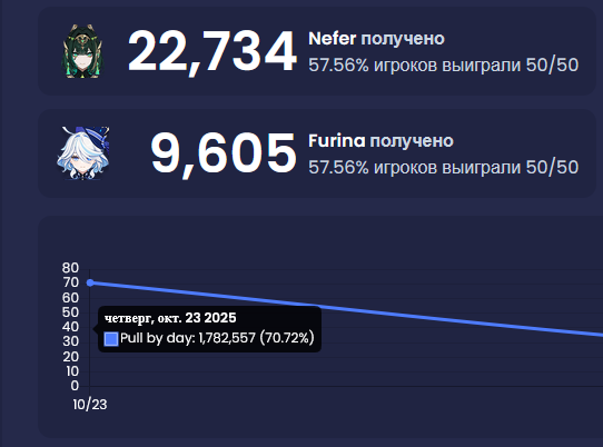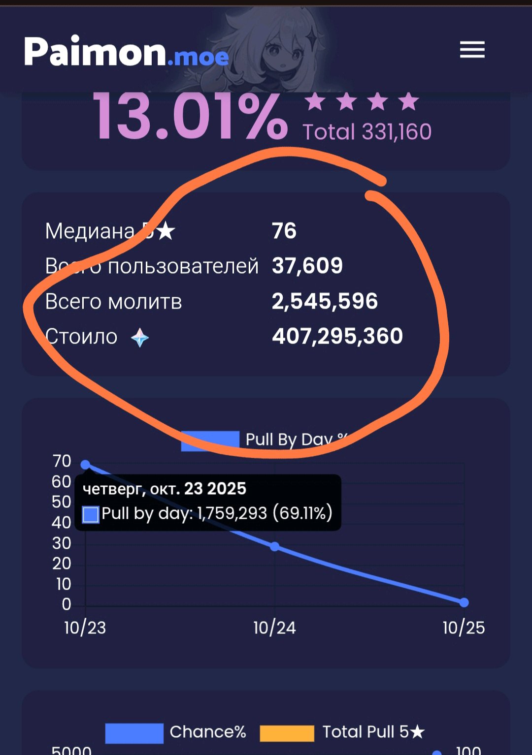 >>5804083 Сверяйте с акашей Обычно данные паймон.мое вдвое ниже, чем данные Акаши - так 600к мопедов на Акаше, на паймон.мое означают 300к круток; с Варесой та же хуйня - 160к против 80к У Хрюши сейчас 156к на Акаше, например, но это тоже не финал У Скипк 384к