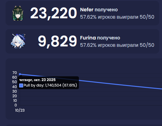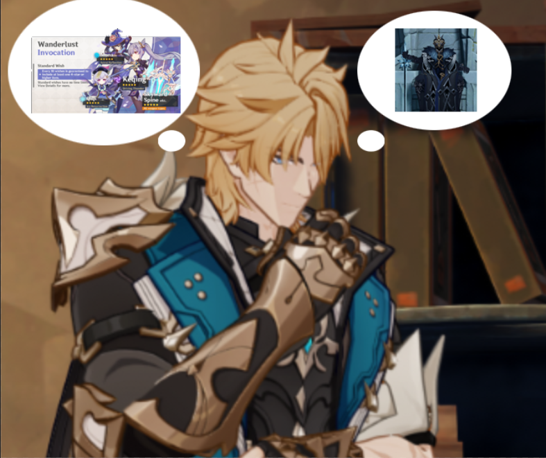 Я когда вкатился был банер Аято и Дыня(последние два дня) Выбить нихуя не успел, в итоге ждал уже не актуального пятыча год (уже была ленка, потом мог выбить Базилета, фуру, но откладывал) В итоге выбил ну и доволен.