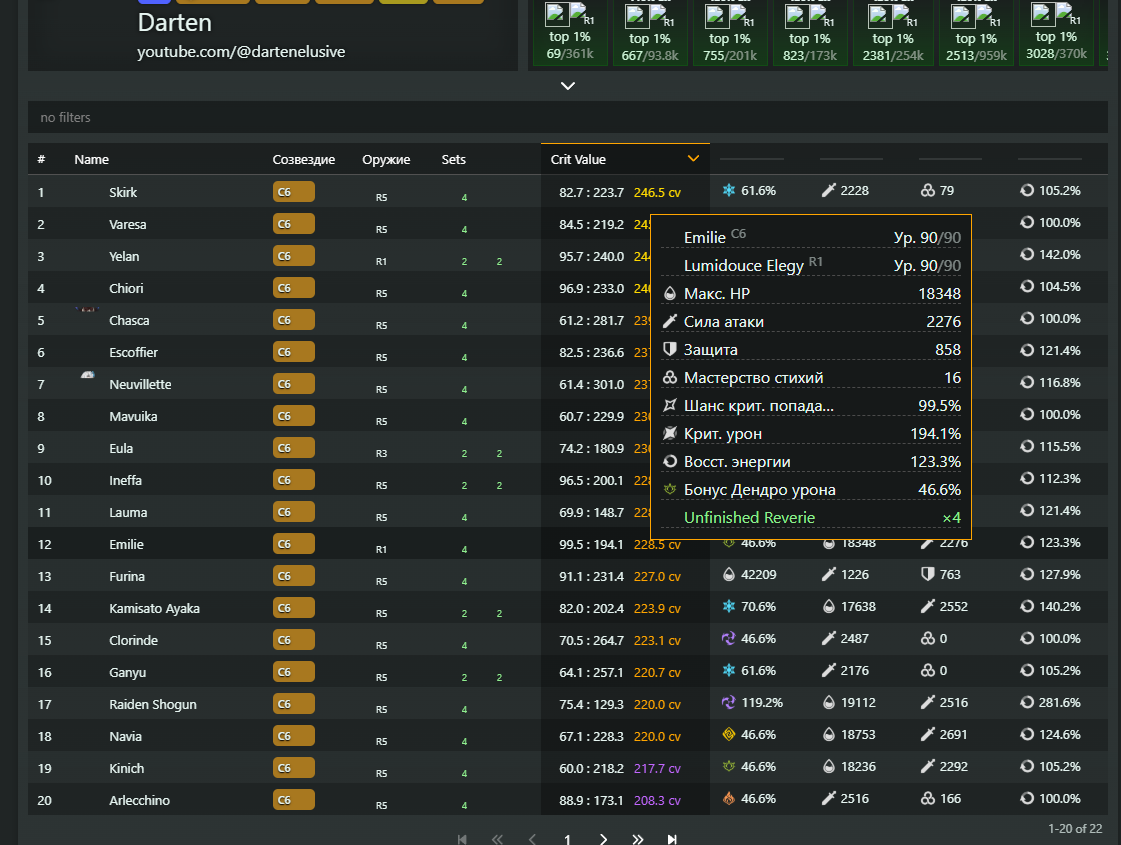 >>5804136 У тебя владение C2+ персом зашкаливает и обходит вообще всех остальных. То что C0 говно ебаное никакой пикрейт не исправит, не говоря уже о том, что владельцы C0 её намертво на кукан Туалету насадили. Убирай нахуй его и столько же снимай с Богини. Вот её реальный пикрейт.
