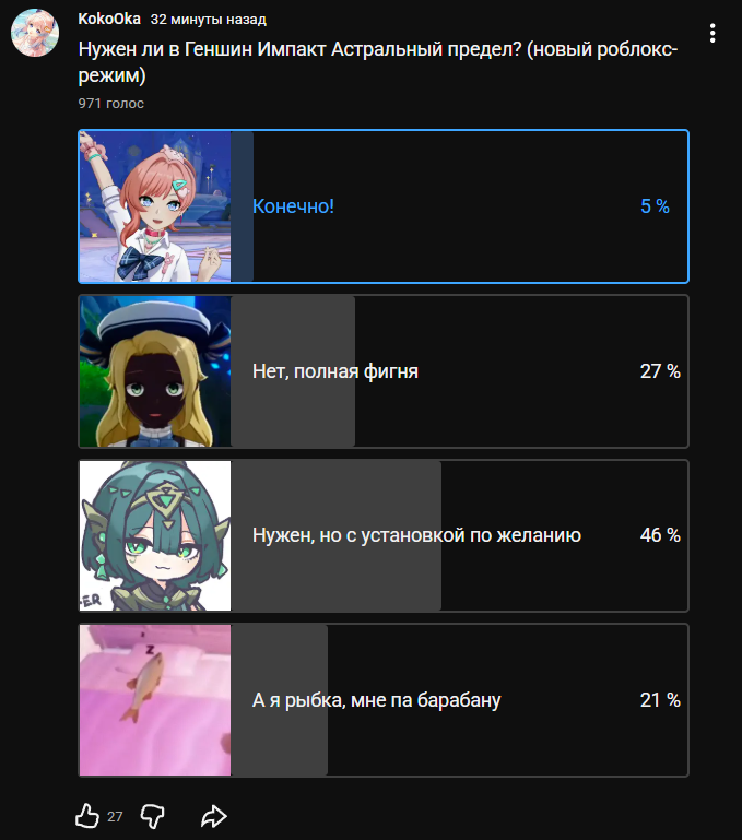Ну что ж. Сегодня, 27 коктября 2025 года от рождества Христова, я, тредовичок-анонимус, удаляю гашню, перестаю смотреть по геншину контент, перестаю заходить в тред ровно на 1 год. Если по истечении года остальной Нод-край и начало Снежной окажутся топ-базой, а количество контента будет адекватным, а не как в Натлане\Нод-крае на данный момент, закатываюсь на новом акиче. Если уровень прогрева гоев и распила будет таким же или хуже, дико проигрываю с тех, кто до сих пор будет геншиноодебилевший.