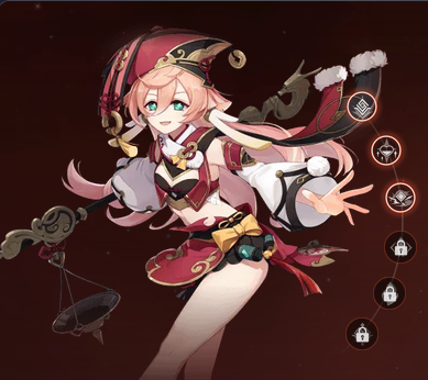 Пассивка: «Я командую парадом!»: Повышает урон взрыва стихии на 40%. После использования взрыва стихии, следующая атака персонажа кричит «Салют в нашу честь!», призывая белого коня, который топчет врагов.