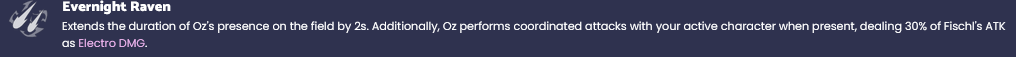 Взрыв стихии: «Зеленый слоник»: Братишка поет свою пронзительную балладу, призывая на поле боя зеленого электрослоника, который наносит периодический Электро урон и с шансом ошеломляет врагов, заставляя их слушать песню.
