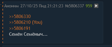 >>5804071 >Шанс шпионажа маловероятен Но не равен нулю! Вообще хочу верить, что Омесов - это литерали тайный шпион на максималках, который типа дурачком прикидывается, дичь какую-то творит... Но активную дичь! И даже вон, перед баром тут стоит 24/7, всех видит, кто с кем общается и всё такое, но вопросов ни у кого не вызывает вообще. Ноль подозрений. Он как интерьер воспринимается, как охранник. А почему? Потому что не в крысу шкерится и вынюхивает, а как дурачок с плакатом стоит пикетирует.