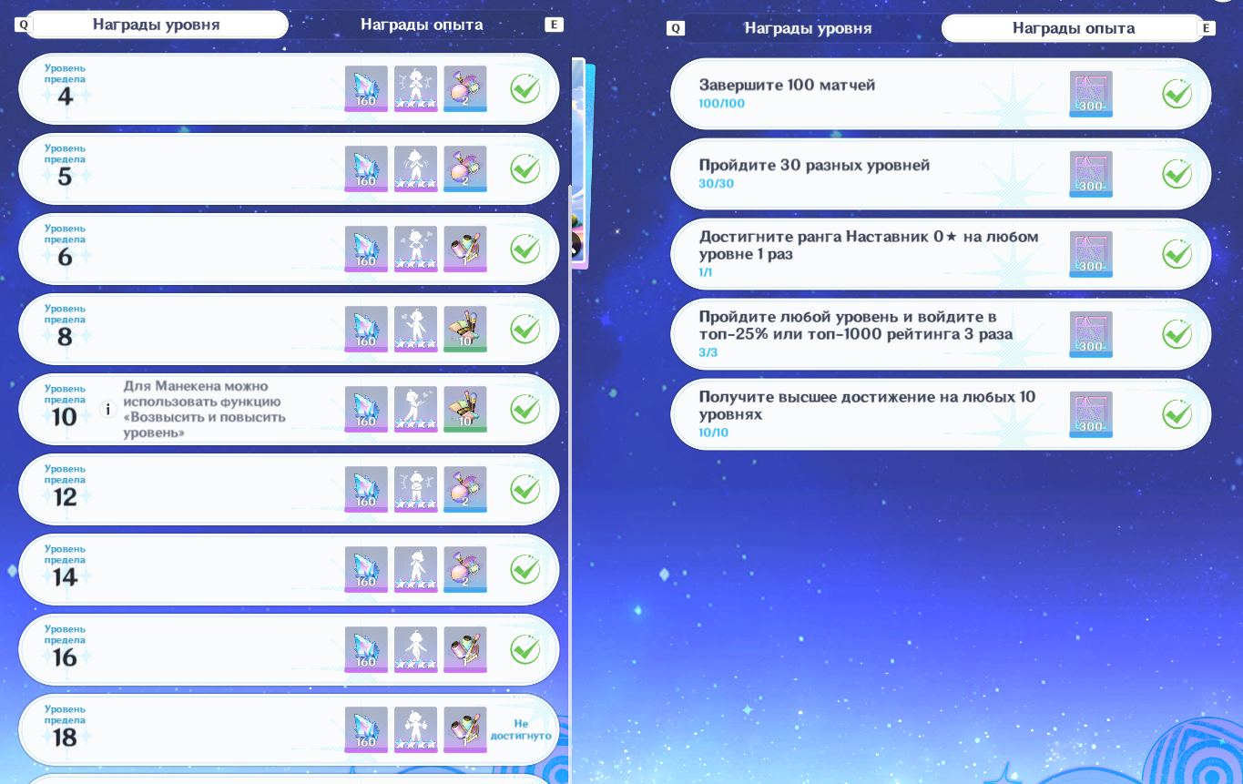 А я думал надо будет ещё хуй знает столько дрочить предел, чтобы манекенов на фулл апнуть... Неожиданно приятно, что достаточно 10 лвл. Спасибо, Ляо! Я правда за 6 синих круток нихуя не получил, но счётчик пити хотя-бы набился немного.