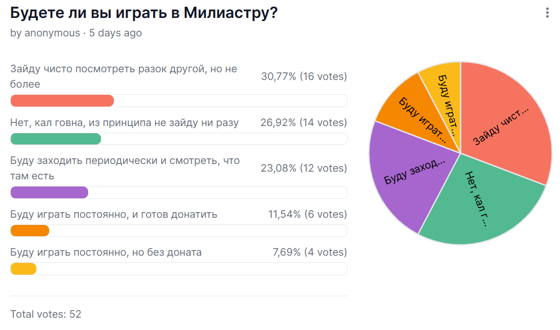 >>5806729 В ебучий страпол не заходит, а чёт прокликивать и прописывать что-то, чтобы проголосовать и кто-то озлобленный этим потом в треде размахивал впадлу.