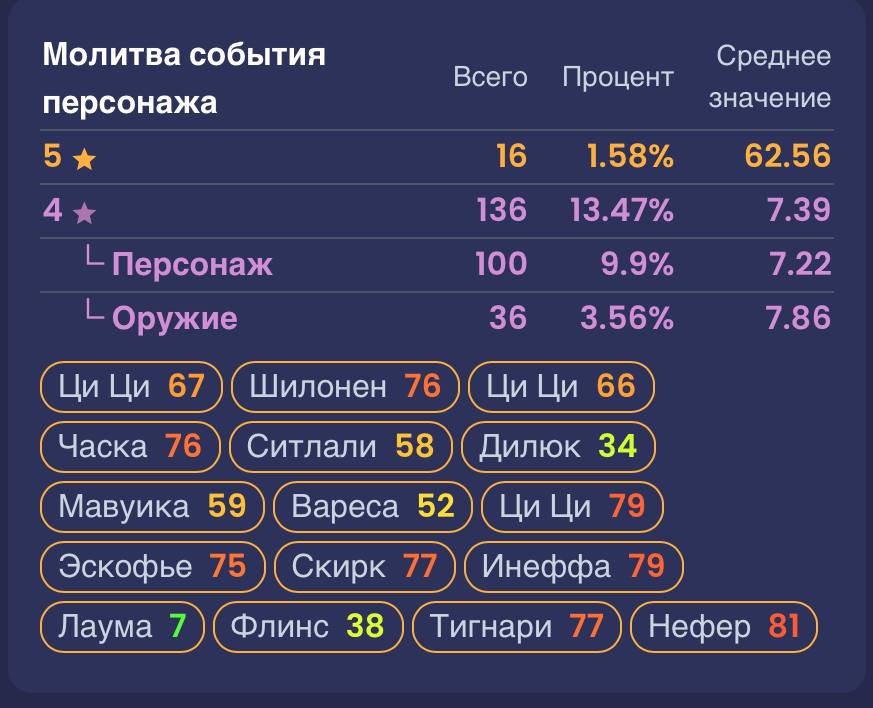 >>5806963 У меня же как-то собрался. 6.0 конечно был лакерным в плане круток, но до него у меня постоянно скам был, жаль статистику никогда полноценно не вёл. Круток получается всегда больше, чем считается во всяких подсчётах, не в последнюю очередь из-за кэшбэка на четвёрках. У меня подписка не с релиза + лез неоднократно в оружейный (9 сигн есть), и стандарт даже крутил за гемы, и копчуху крутил в её баннер, то есть не все ушло на лимитных чаров. Ни разу не покупал паки.